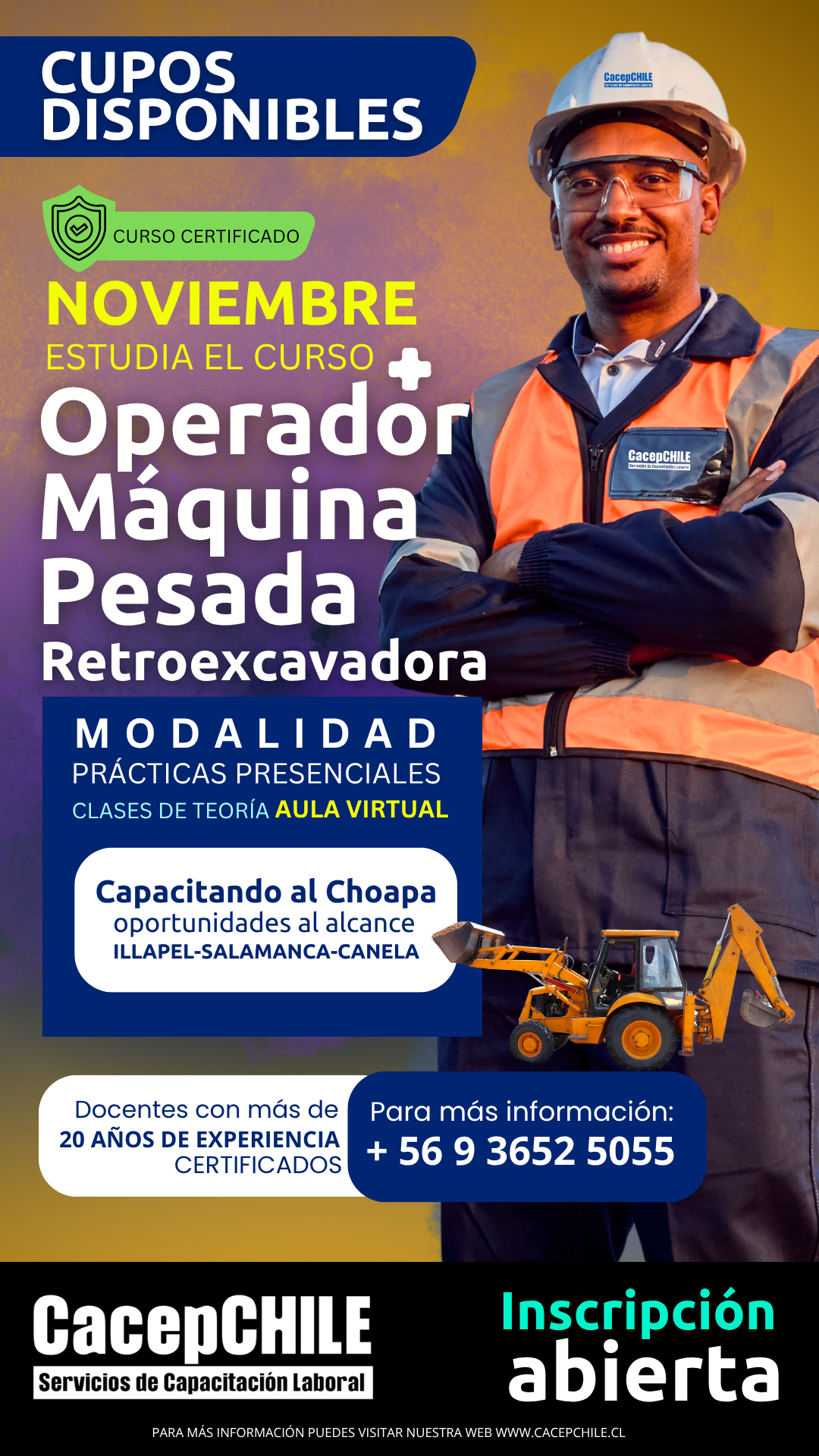Alumnos y alumnas de Salamanca e Illapel obtienen su certificado por curso de operador de retroexcavadora